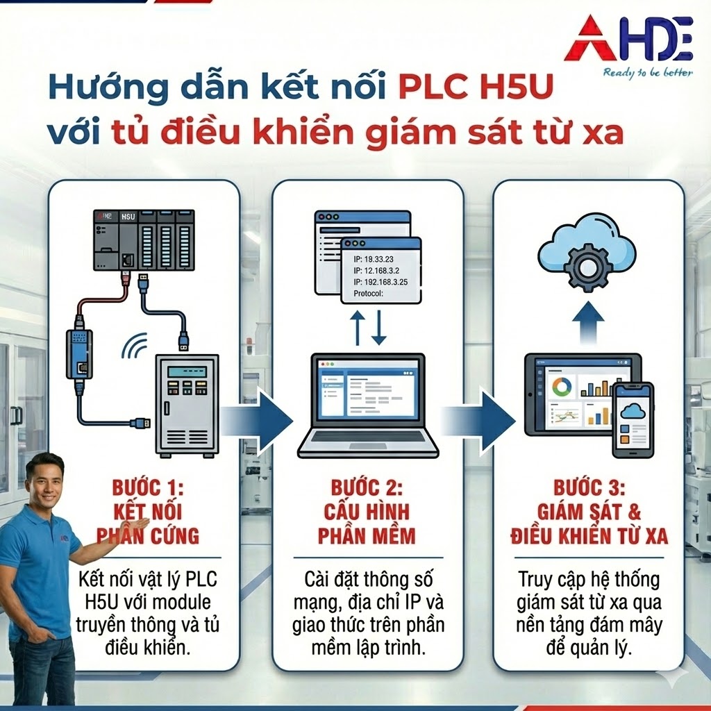 Hướng dẫn kết nối PLC H5U với tủ điều khiển giám sát từ xa
