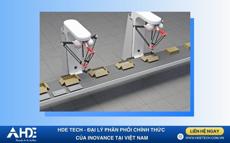 Robot Delta là dòng robot chuyên dụng cho các ứng dụng gắp sản phẩm tốc độ rất cao, thường thấy trong ngành thực phẩm và FMCG.