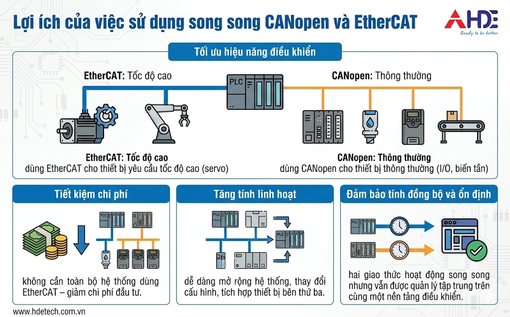| Tối ưu chi phí | Thiết bị giá hợp lý, không cần motion controller riêng |