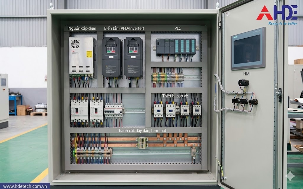 HMI (Human Machine Interface): Giao diện người-máy để giám sát và vận hành.